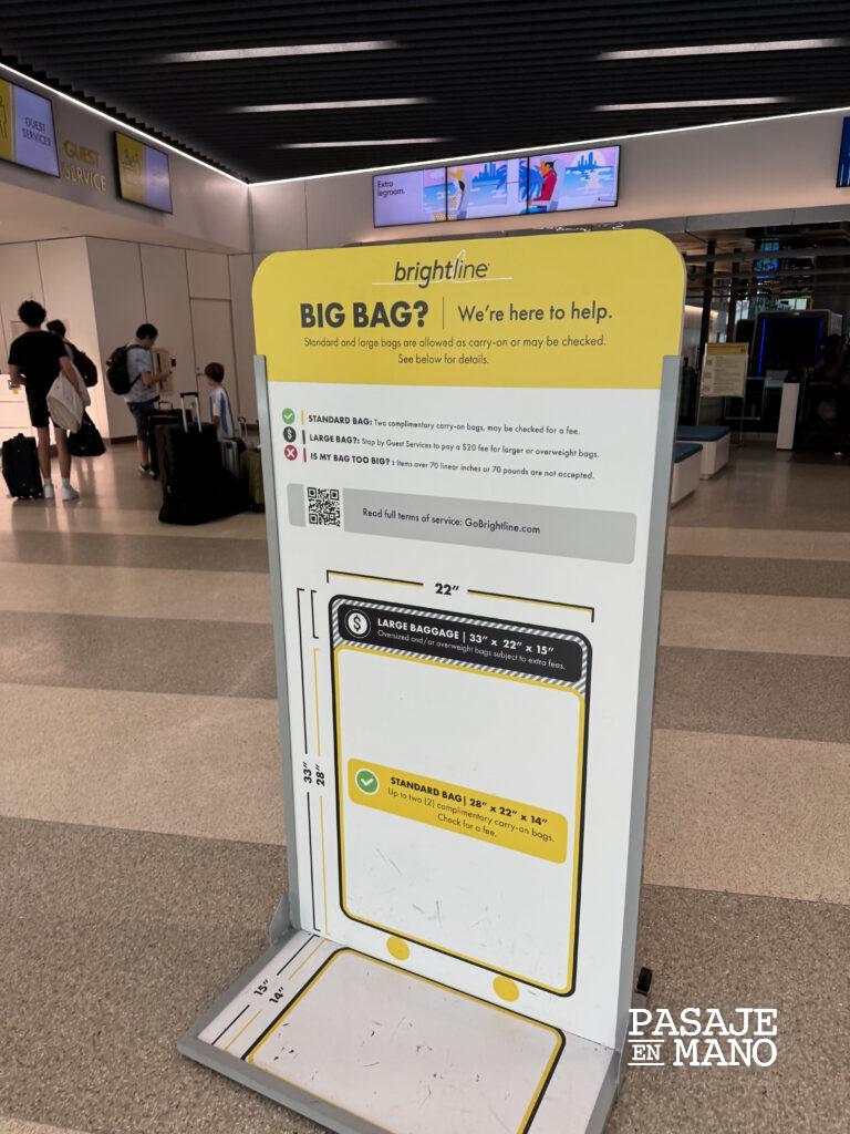 Este es el cartel que está antes de hacer el check in y que tiene las medidas de la valija: