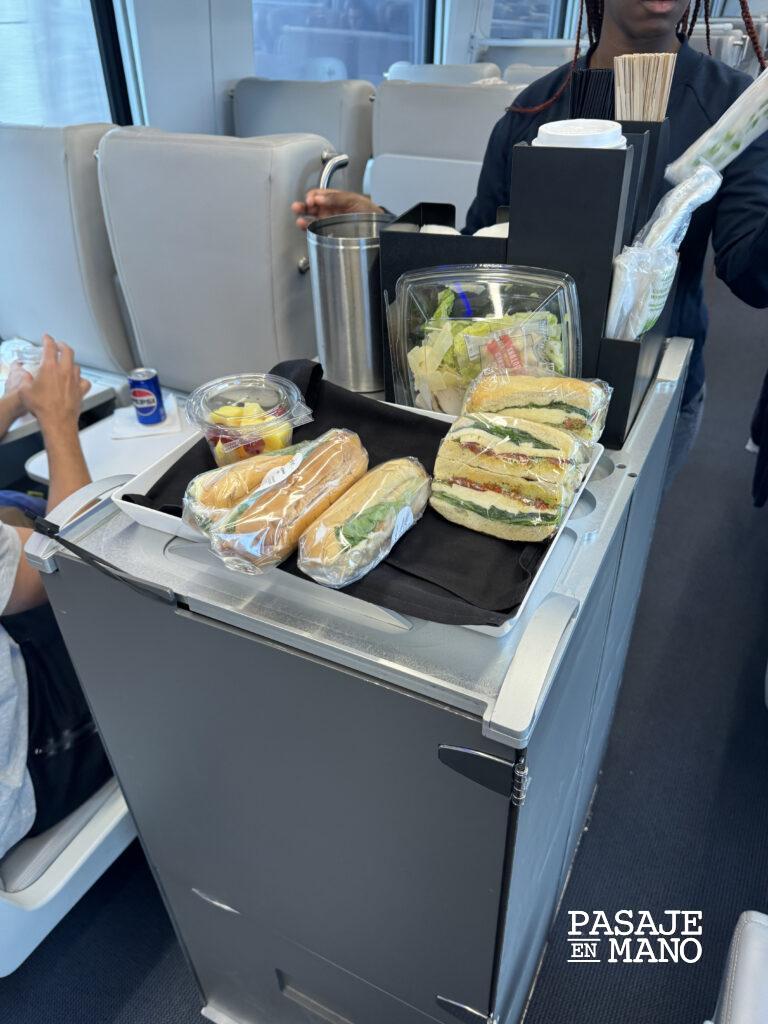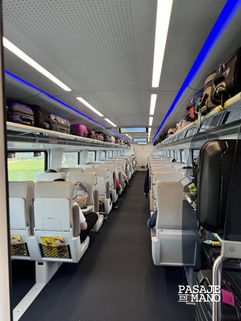 Cada uno de los asientos tiene mesita y enchufe. Los baños son súper amplios y tienen cambiadores para bebés. También venden snacks y bebidas (sándwiches, ensaladas, frutas, etc) y hay wifi libre para todos los vagones. Los trenes son petfriendly.
