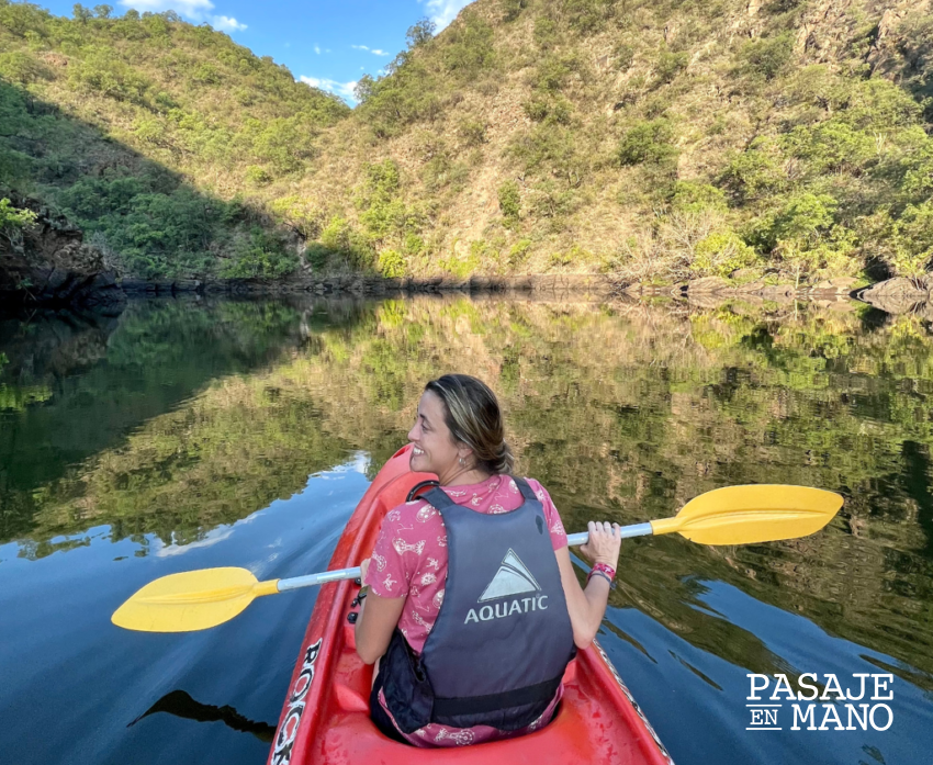 En Las Tapias hay un embalse escondido: se llama Boca del Río o Dique Nivelador. Tiene un espejo de agua grande y calmo, perfecto para navegar. Podés acceder desde el parador @tila.henen y alquilar un kayak.